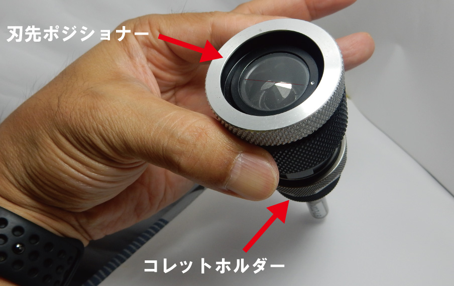 独自の刃先ポジショナーと微調整可能なコレットホルダの採用で