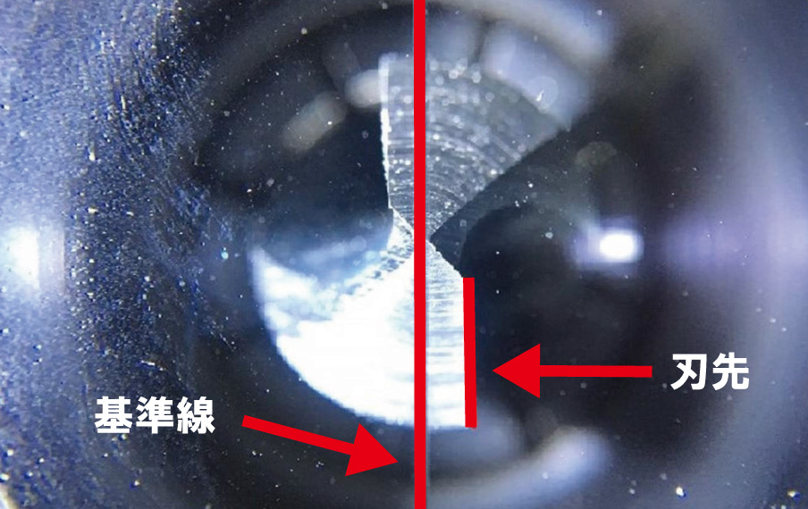 (刃先ポジショナーの基準線と刃先が平行になるように調整)